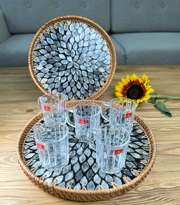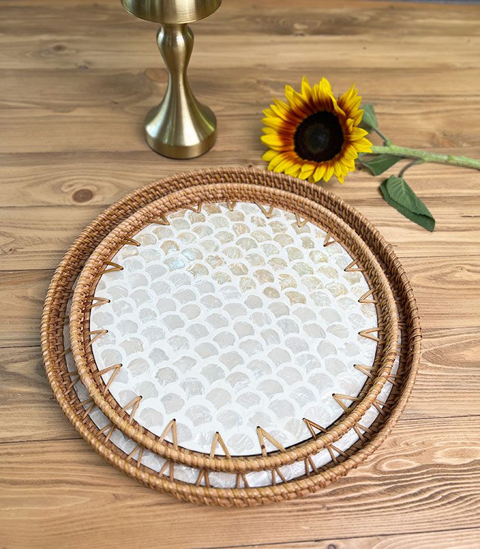 ویژگی های سینی صدف و راتان دسته دار