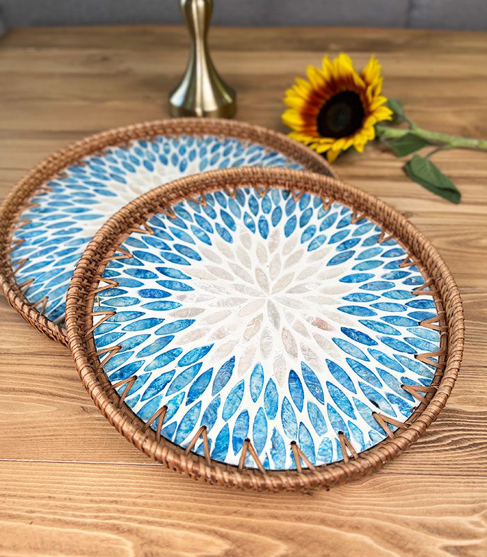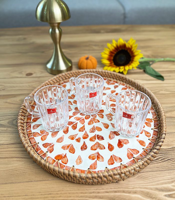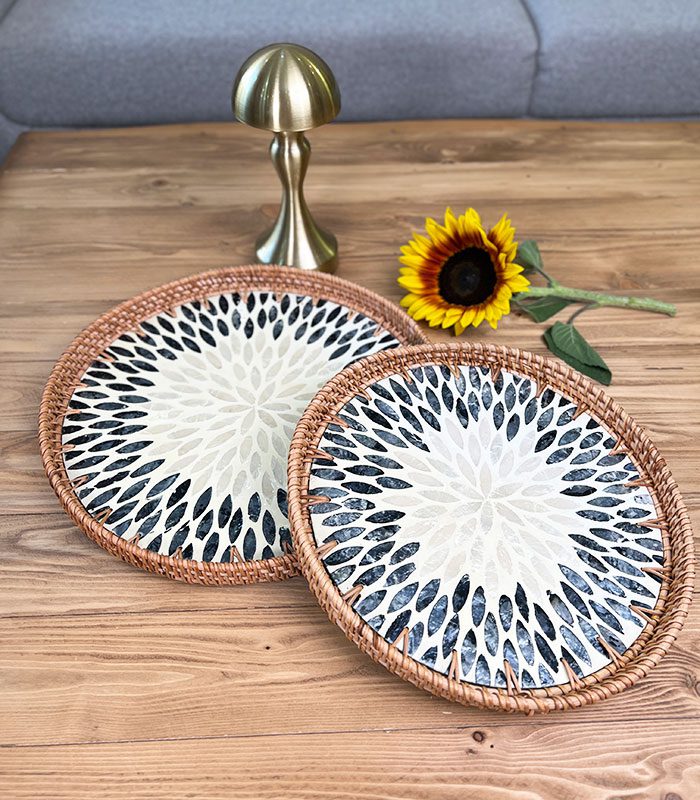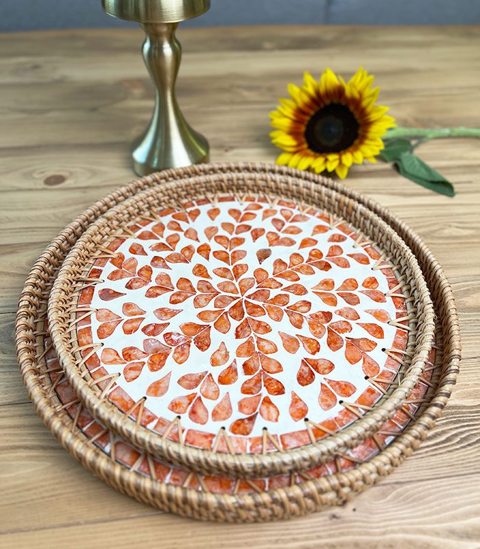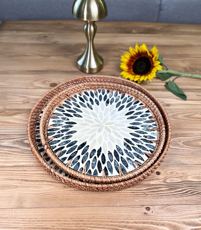 سینی صدف و راتان گرد در دو سایز و طرح های مختلف محصولی چشمگیر و خاص برای افرادی که به زیبایی اهمیت میدهند .