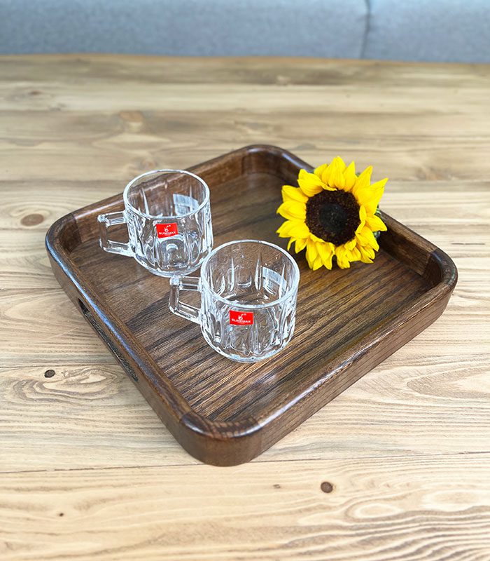 سینی چوبی مربع جنس چوب گردو ، طراحی زیبا و فوق العاده کاربردی است .