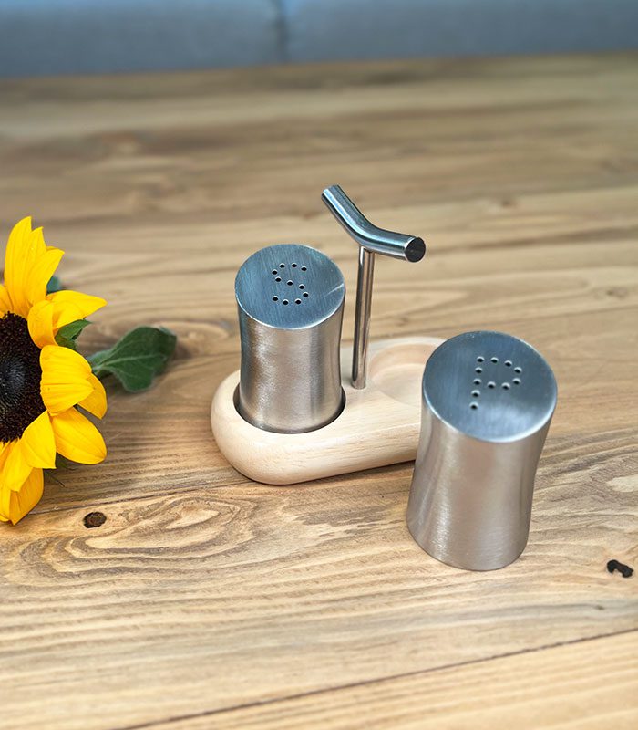 یک جفت نمکدان استیل و زیره بامبو